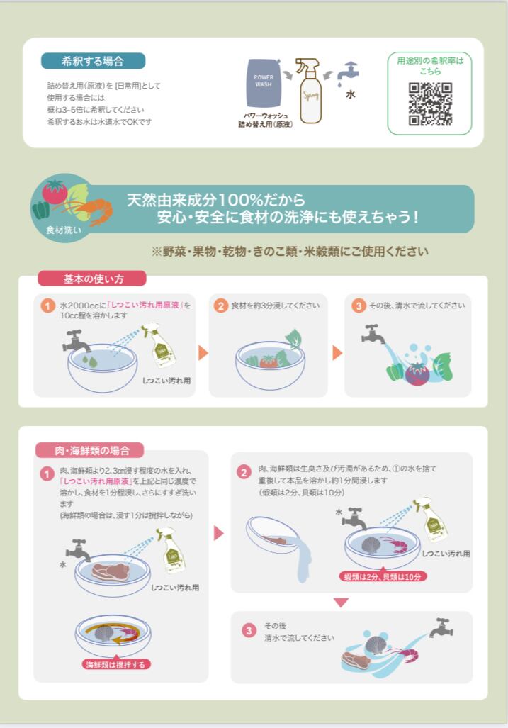 原液を日常用として使用される場合には、おおむね5倍程度に希釈してください。 しつこい汚れには原液をそのままご使用下さい。